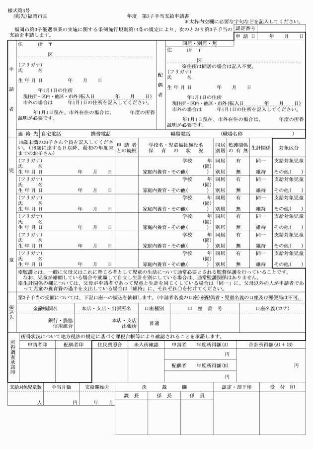 ○福岡市第3子優遇事業の実施に関する条例施行規則