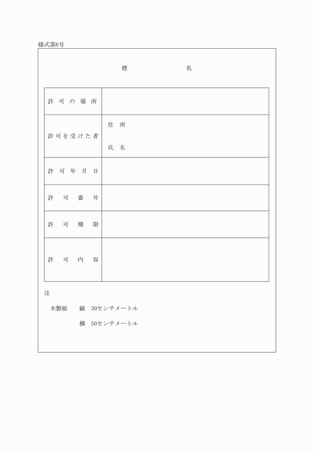 第3条 条例第5条の標札は、様式第6号によるものとする。