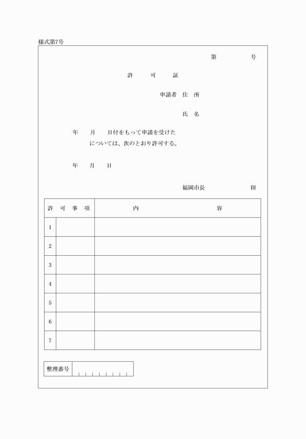 2 条例第5条の許可証は、様式第7号によるものとする。