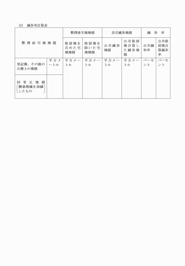 (5) 整理施行前後の地積(様式第2号)