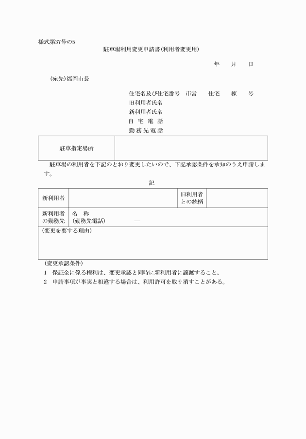 2 市営住宅住居変更承認申請書には、前項の規定による申請をする原因となった事実を証する書面を添付しなければならない。ただし、当該書面を添付させる必要がないと市長が認める場合は、この限りでない。