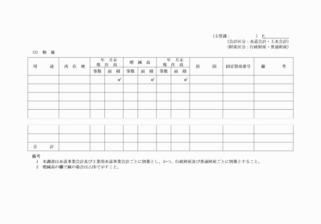 第12条 所管換又は所属替をするときは、公有財産引継書(様式第1号)に必要な事項を記入し、関係書類を添付して所管換にあっては経理課長、関係局長及び財政局長へ、所属替にあっては関係課長及び経理課長に送付しなければならない。