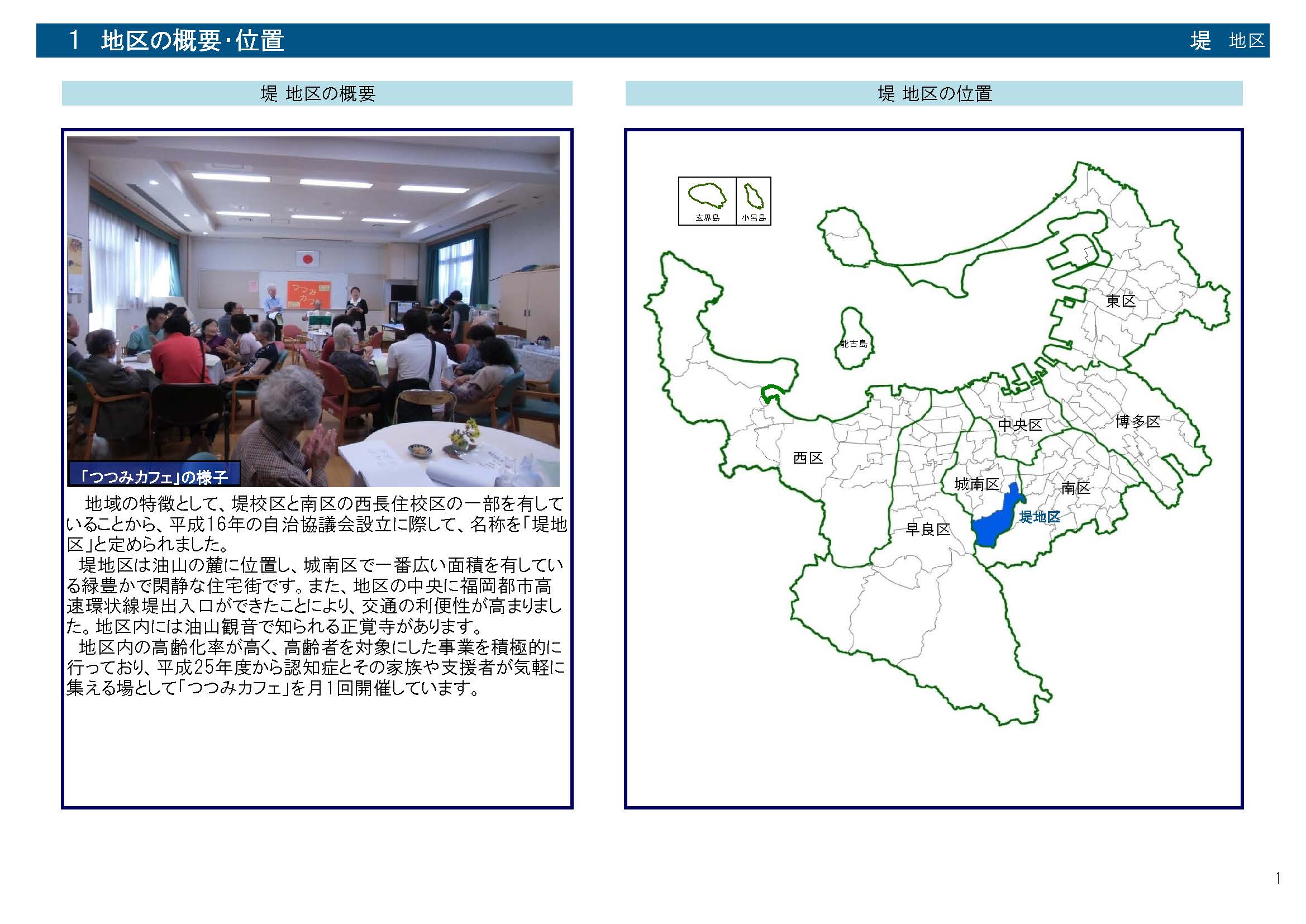 地域のまちづくりを進めるためには、まずは地域の特色や実情をよく知ることが必要になります。自分たちの住んでいる地域を見つめ直し、地域の魅力や課題を共有することができるように、福岡市では、各小学校区別の人口動態などの基礎的な情報や地域での活動内容などを「校区データ集」としてとりまとめ公表しています(令和6年3月更新)。