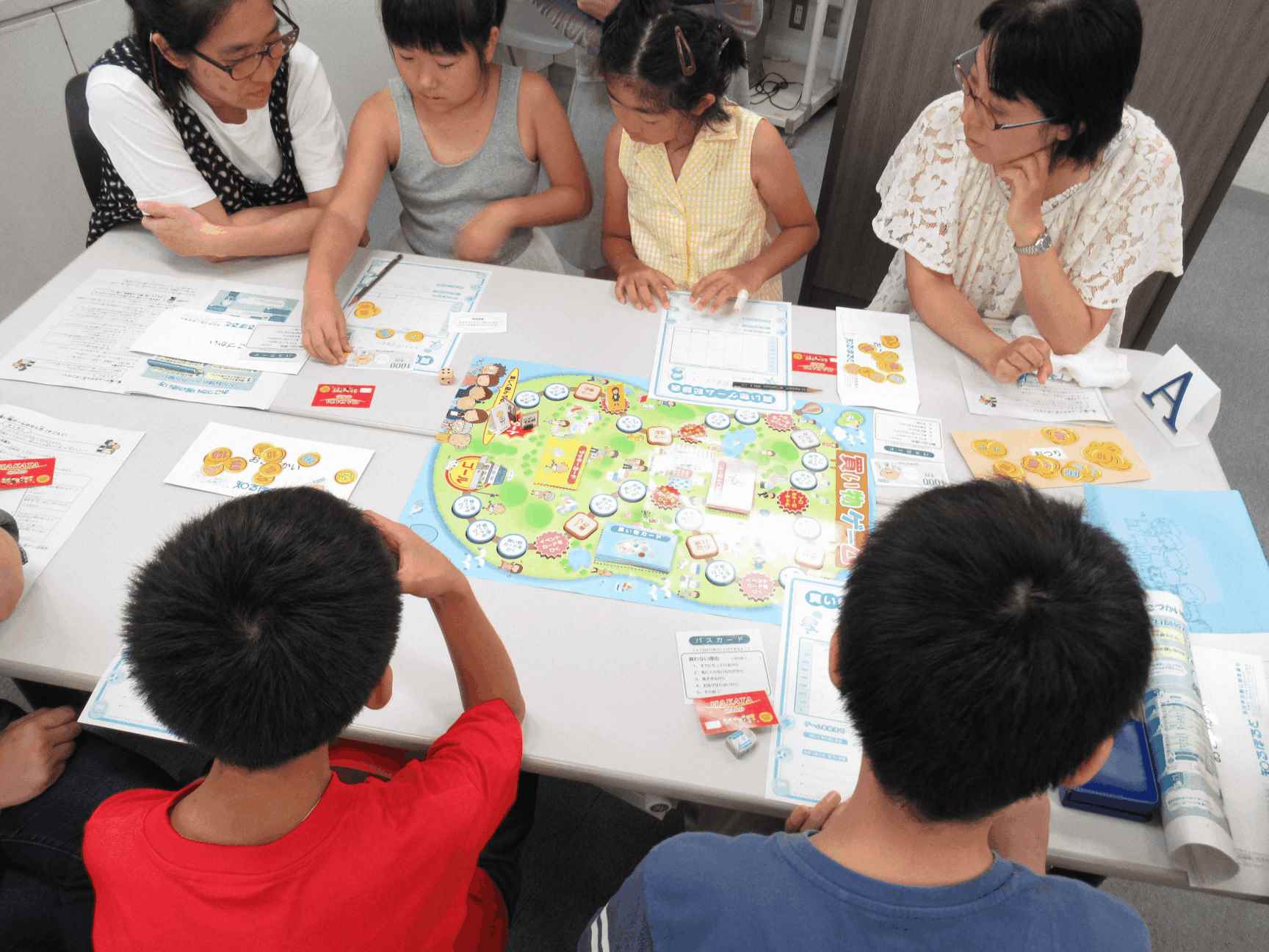 講座では、クイズにも挑戦しながらお金の役割や使い道など、お金について考えました。また、カレーゲームやすごろくお買い物ゲームを行い、身近な物の選び方や記録の付け方を学びました。ゲームでは親子やグループで協力しながら取り組み、お金について楽しく学ぶことができた様子でした。