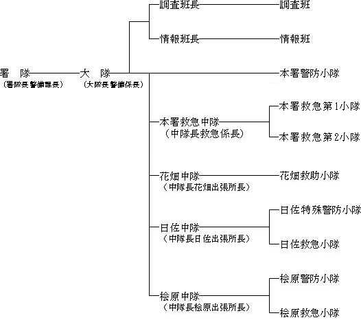 署隊長 | 警備課長 | 警備係長 | 調査班長 |