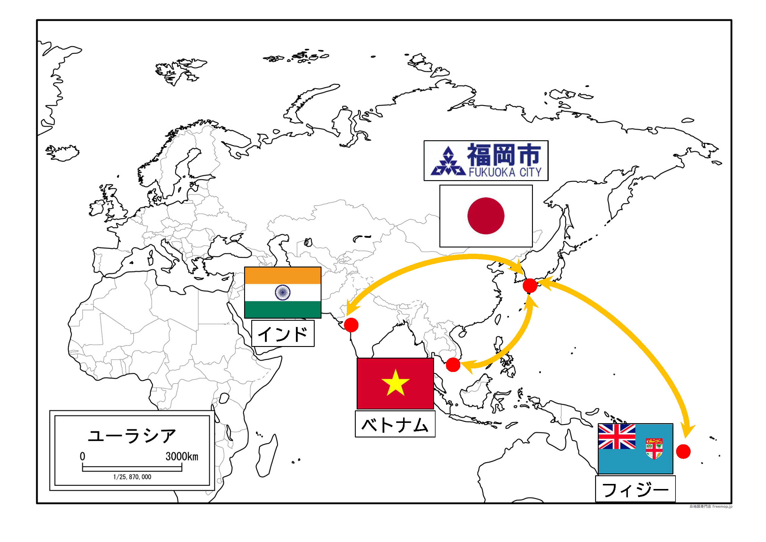 福岡市は、第13回アジア太平洋都市サミットへのカント―市の参加を契機として、技術交流を深め、令和4年度は、国土交通省の「本邦優位技術の普及方策に係る調査検討業務」に福岡市国際ビジネス展開プラットフォーム会員企業とともに参画し、職員を同国に派遣する等、カント―市との関係性を構築してきました。