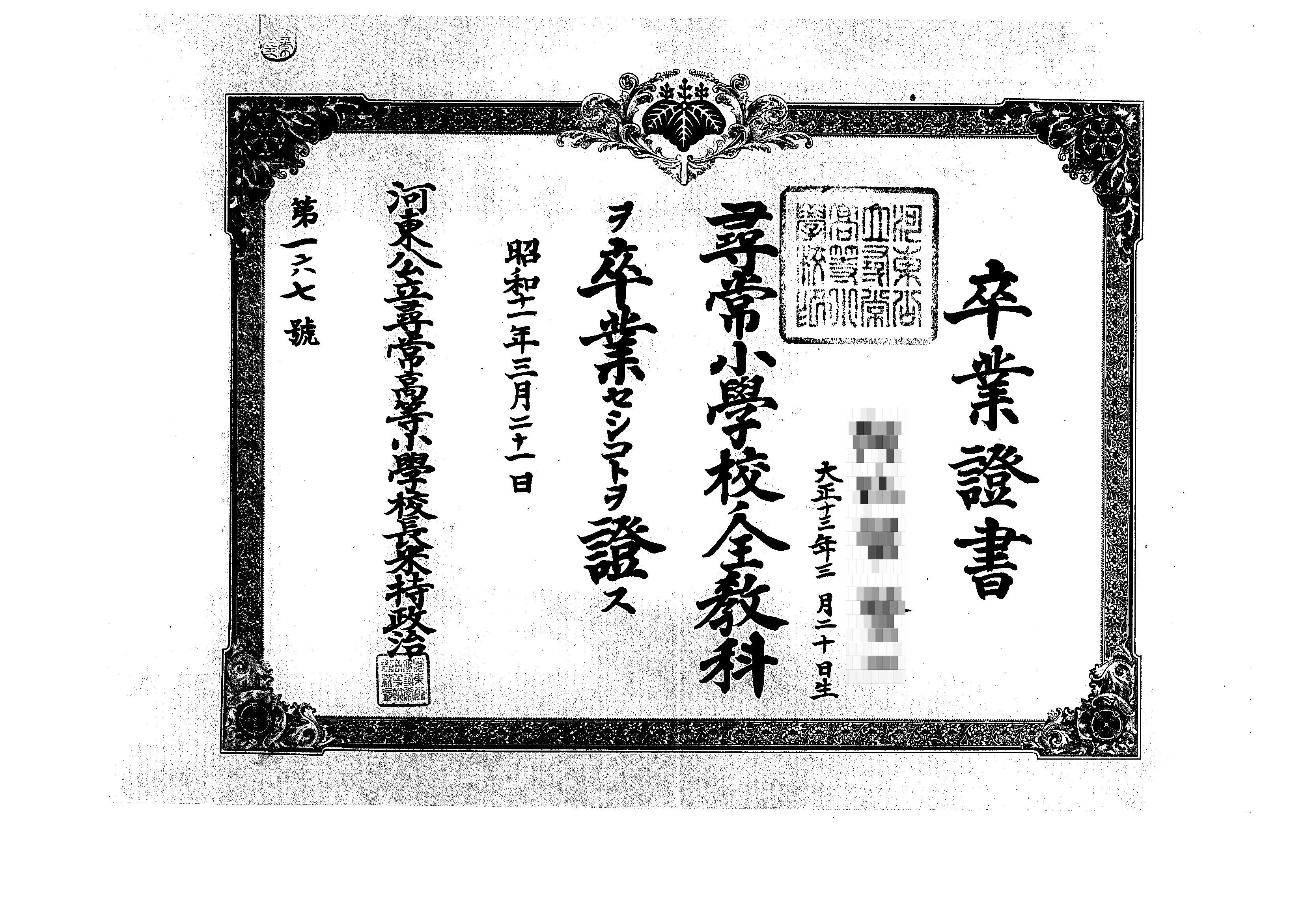 卒業証書<尋常小学校>(昭和11年3月21日)