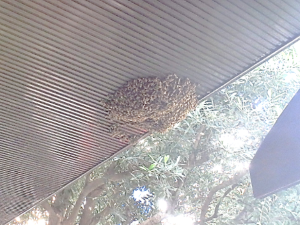 ビル1階軒下に付いたニホンミツバチの分蜂は対応できます。