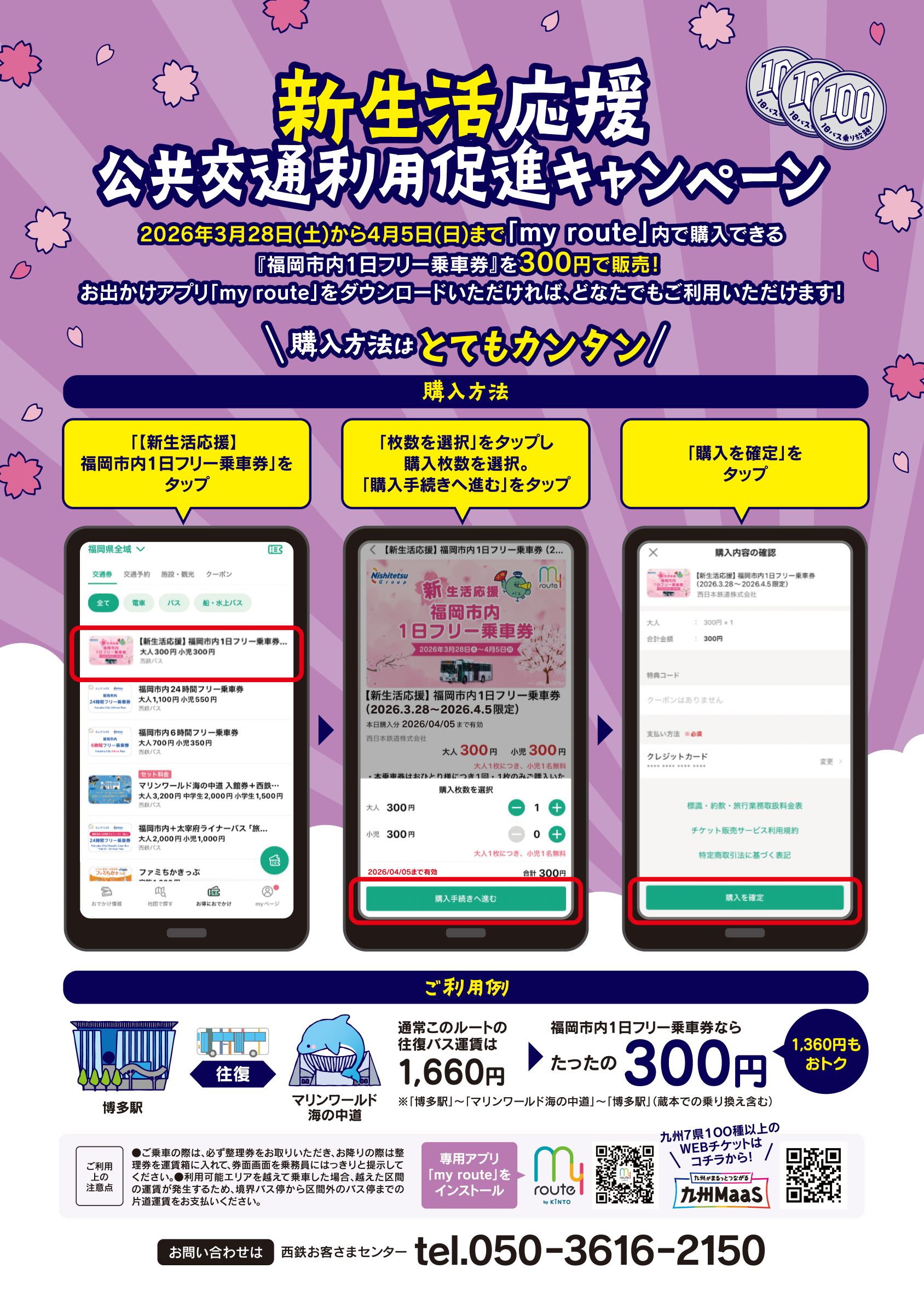 「新生活応援キャンペーン」を実施することで、福岡で新生活を始める皆様に西鉄バスをご利用いただき、福岡市内の交通利便性を感じてみてはいかがでしょうか。