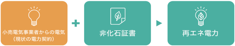 発電時にCO2を排出しない「非化石電源」(太陽光、風力等)の電気から、その「環境価値(非化石価値)」だけを分離して証書にしたものです。非化石証書の購入量に応じて、使用電力の再エネ化を図ることができます。