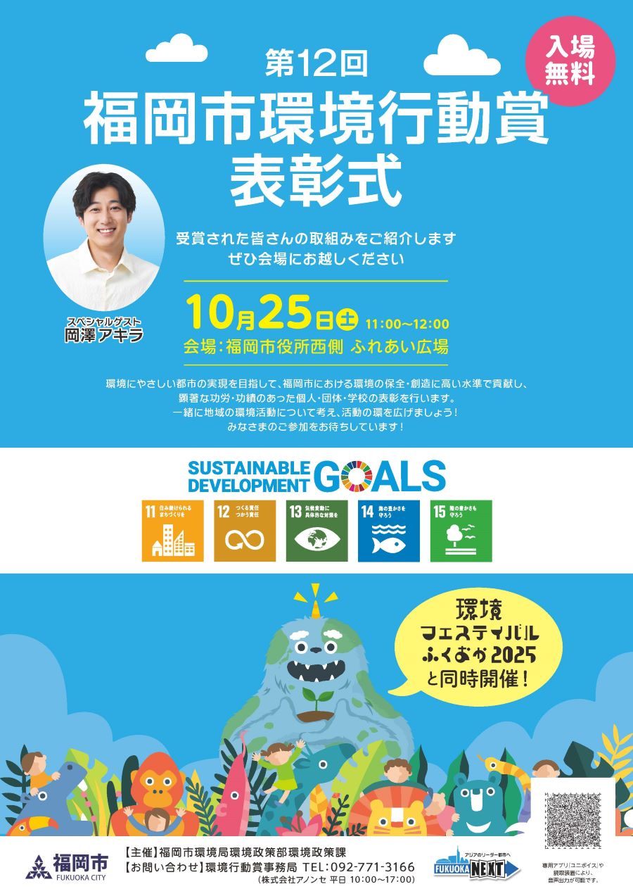 第12回となる表彰式は、市内で取り組まれているたくさんの活動についてより多くの方に知っていただけるよう、環境フェスティバルふくおか2025のステージイベント内で開催します!