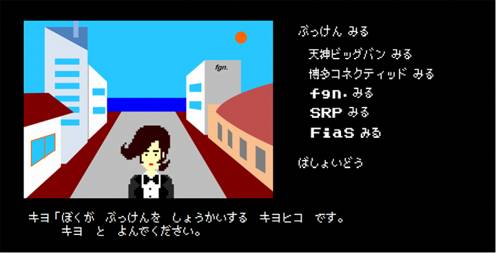 ファイナル〇ンタジーの世界観のオマージュです。ステータス画面では福岡市の特長や魅力が網羅されています。たくさんのキャラクター(一人一人のキャラにそれぞれちゃんと設定があります)にて人材の豊富さをアピールし、空港・都心部・自宅・海・自然の近さ等をフィールドで表現することで、ビジネス環境の良さ、住みやすさをアピールしています。バックアップ拠点としての特性だけ、なぜかドラ〇エの世界観が出てしまいましたがご了承くださいませ。