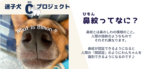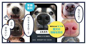 人間の指紋のように犬の鼻紋で、犬を特定する技術を開発中。偶然見つけた誰かや、保護先の施設が「うちの子」だと確認して知らせtれくれます。(注)AIは学習途中です。鼻の登録が増えるほど認識制度が向上しますので、ご協力をおねがいいたします。