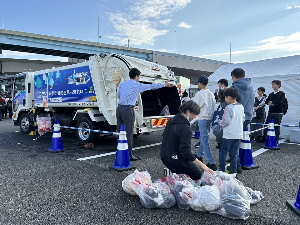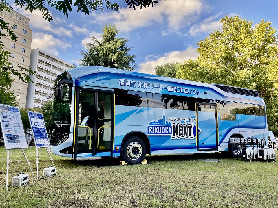 福岡市は、水素で走り、発電もする燃料電池バス『Moving e (ムービングイー)』などのFCモビリティをさまざまなイベント等で運用しています。