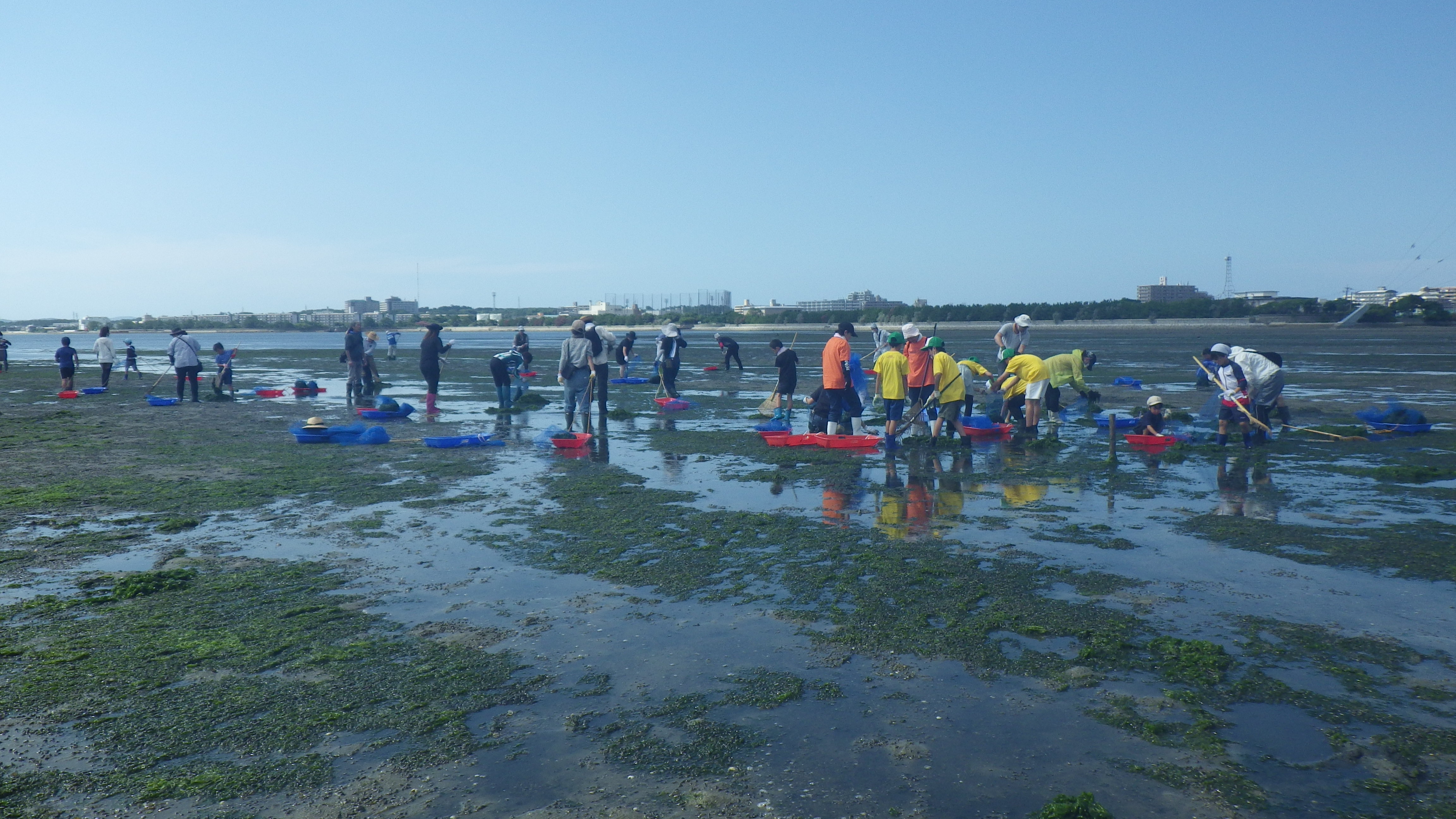 みんなでアオサを回収することで、人と生きものにやさしい干潟の環境を保全するとともに、この活動を通して自然豊かな干潟にふれていただきたいとの思いで企画しています。この活動は今年で15年目になります。