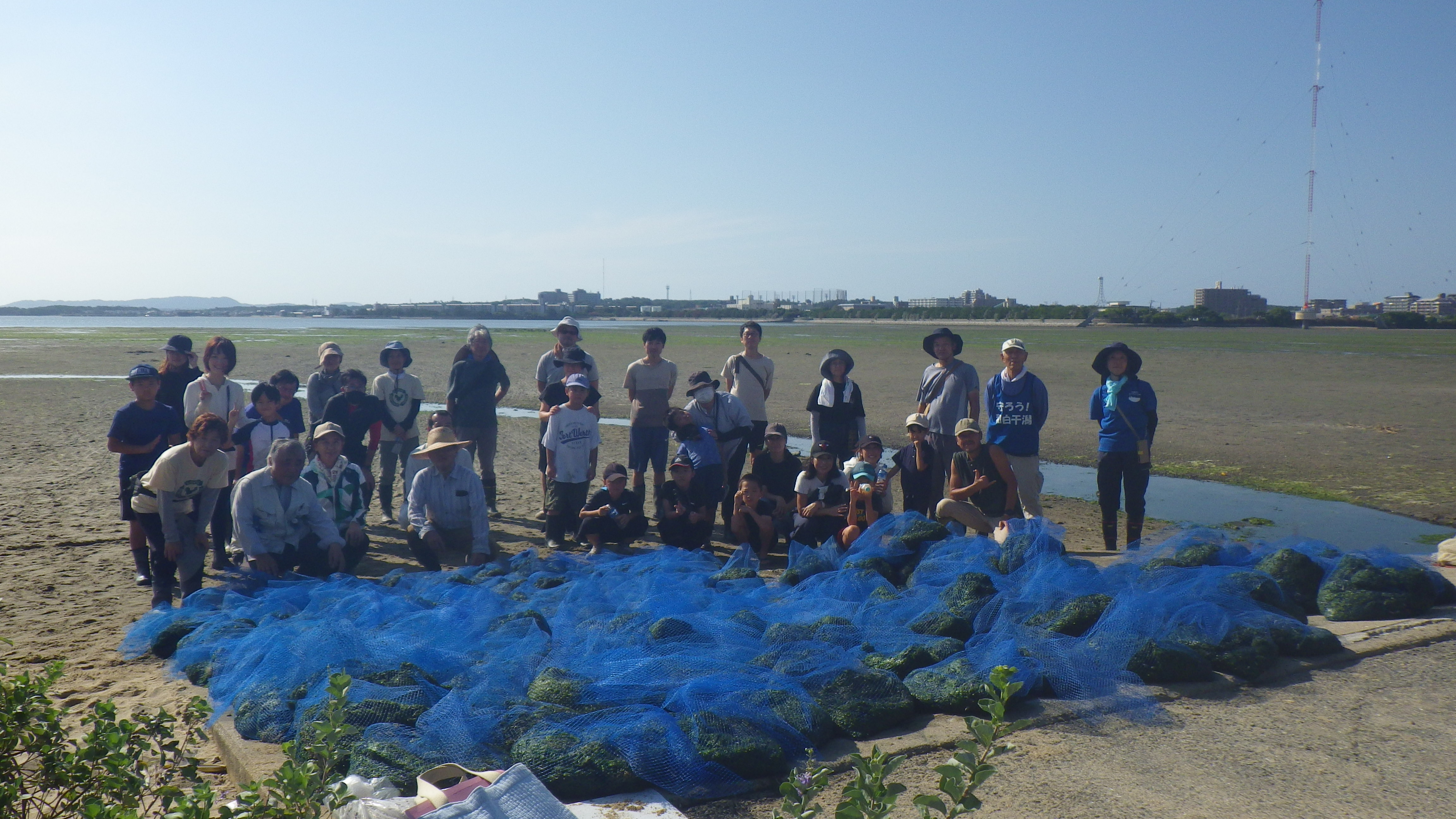 和白干潟保全のつどいによる「和白干潟のエコチャレンジ アオサのお掃除大作戦!!2024」を開催し、50名の方にご参加いただきました。