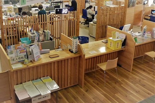 南区役所の子育て支援課では、ぬくもりを感じられるよう窓口や相談ブースに油山の間伐材を使用し、子育てに関する相談をしやすい環境を整えました。