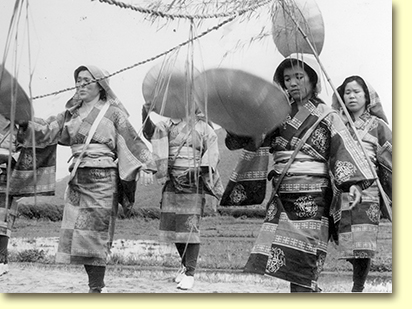 昭和3年、昭和天皇即位の際の大嘗祭に献上するお米を作る田(主基齋田 すきさいでん)で、田植え時に踊った「お田植舞」が今でも伝統芸能として地元で大切に引き継がれています。