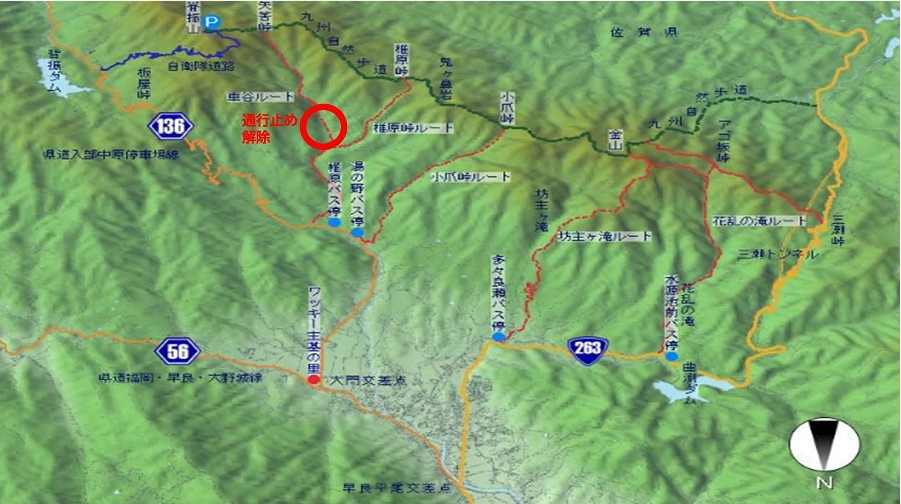 車谷ルート登山口から矢筈峠の通行規制は解除されましたので