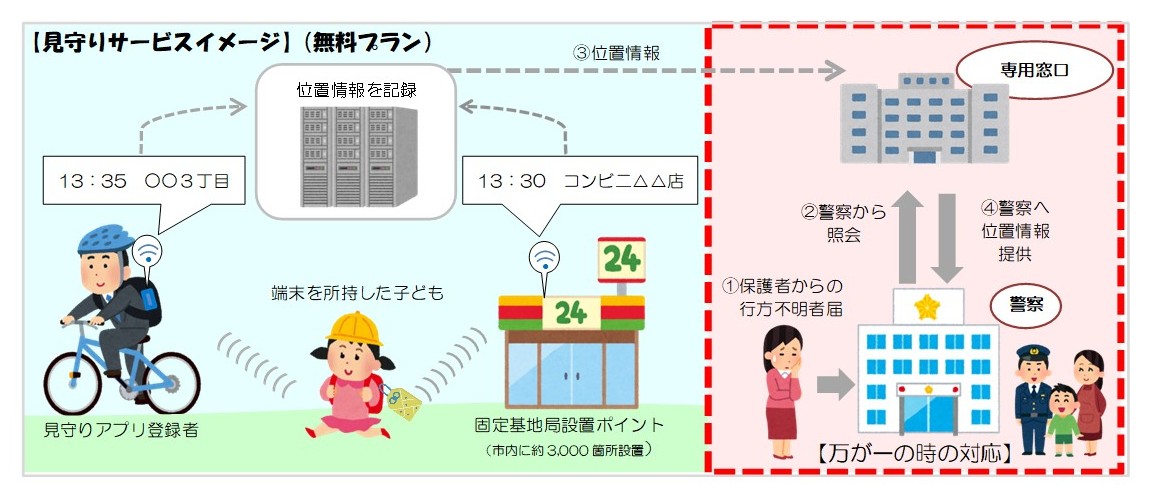 子どもが行方不明になったときなど、位置情報が警察に提供され捜索に活用されます。