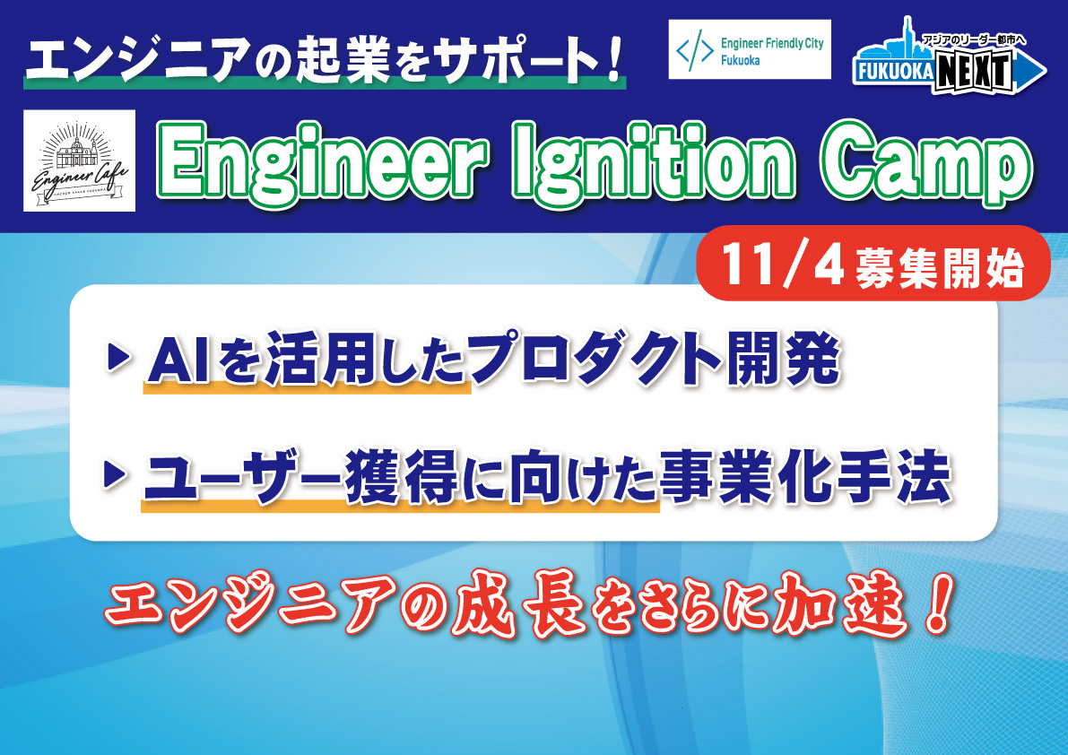 福岡市では、起業家を目指す方のための支援プログラム「Engineer Ignition Camp」を開始いたします。【フリップ】