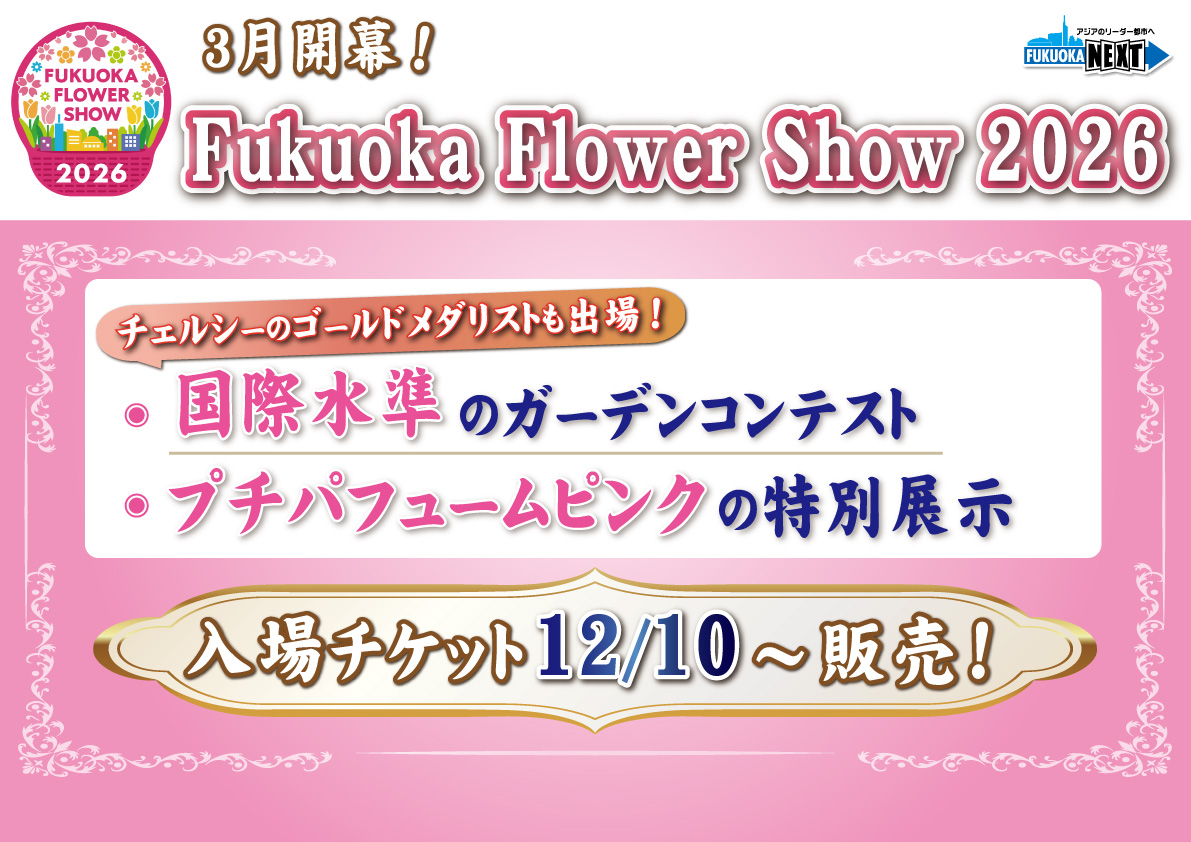 いよいよ、あと3ヵ月です。「Fukuoka Flower Show 2026」来年3月に開幕です。【フリップ】来年とか再来年とかいう言い方していましたけどね、もう、あと3ヵ月というところまで迫ってまいりました。来年3月です。第1回Fukuoka Flower Showですけれども、この度、開催内容を決定をして、チケットの販売を開始いたしますので、ご紹介したいと思います。