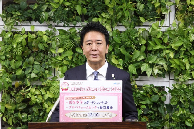 3月は、会場の植物園はもちろんなんですが、いわゆる天神や博多というようなね、福岡の街全体も花で盛り上げたいと思います。オフィスや店舗にもご協力をいただいて、ショーウインドウですとか、入り口を花で装飾をいただくなど、皆さんと一緒に街を彩っていってね、ちょうどこれから暖かくなるっていうシーズンで。それから、街中はちょうど桜も同時期に咲き始めるというような時期でもありますのでね。ぜひ、これから暖かくなるぞっていうワクワク感と同時に、街全体で花で盛り上がることができたらと思います。