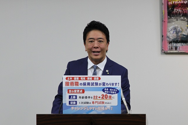 今、福岡市の技術職員だけではなくて、もう世間全体がですね、日本全体で採用試験すごく難しくなっていると。そういう中で福岡市もやっぱり技術職というのをどう確保していくかって、すごく大事な課題になってくるわけですね。そうした中で、より若い年齢の方もチャレンジをできるような取り組みをスタートいたします。