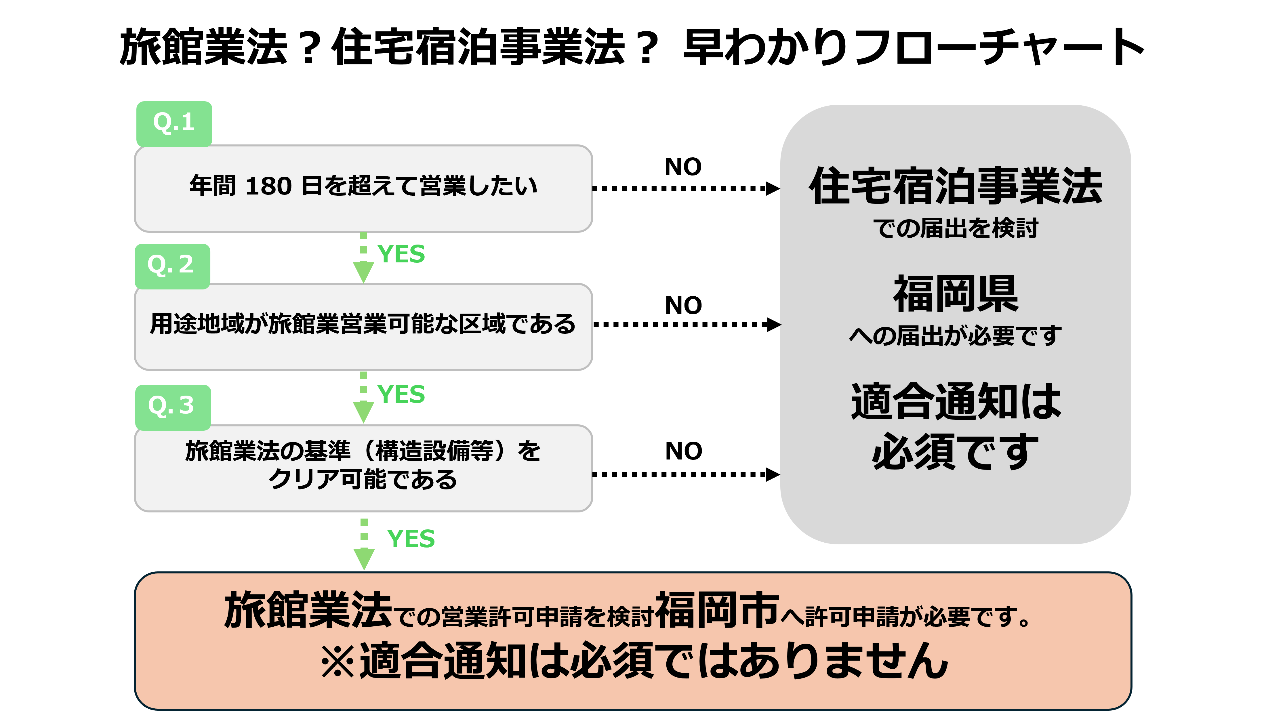 または、福岡県へ「住宅宿泊事業法に基づく届出を行う方法」があります。