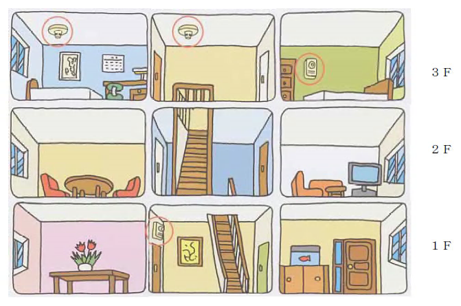 | 火災により発生する煙を感知し,家の中に居る者に対し,音又は音声などの警報音を発する機器であり,一般的に,感知部及び警報部が一つの機器である。 | 火災による煙を自動的に感知し,火災信号を直接又は中継器を介して受信機に送信し,火災の発生場所の表示及び警報を発す る機器で,一般的に,感知器,中継器及び受信機で構成される機器である。 |